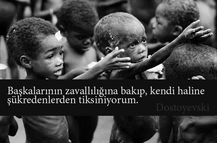 ”Başkalarının zavallılığına bakıp, kendi haline şükredenlerden tiksiniyorum” demiş Dostoyevski.